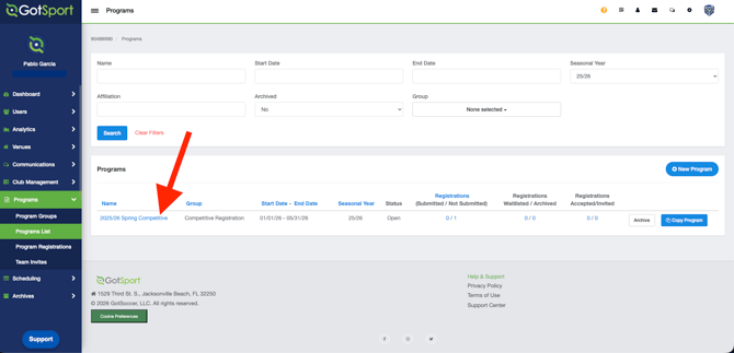 From your Dashboard, go to Programs > Programs List.