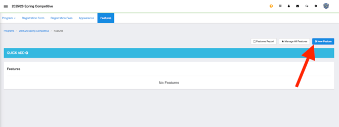 From your program registration, go to Features and then click on "New Feature".