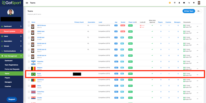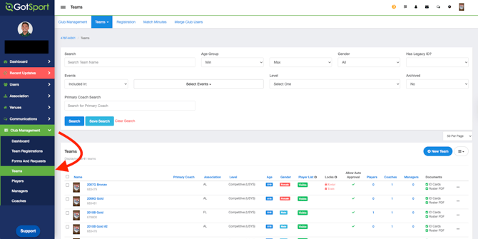 Click on Club Management, and then select Teams.