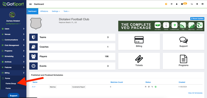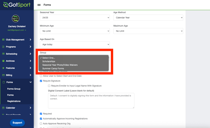 Club Administrators now have the ability to organize their Programs and Forms into Groups. This will help clean up the look of your page and will help Admins find specific Forms or Programs more easily.
