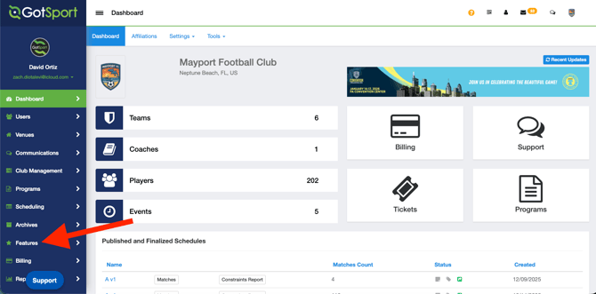 - From your Admin Dashboard, click the "Features" module on the left side.