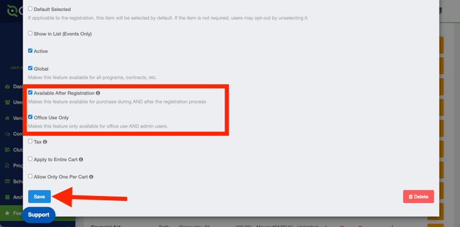 - That's it! Now you have successfully added the Feature to your program registration, but "Office Use Only" will ensure that it is hidden for the registrant, unless they have an "Admin" role with your Club/Organization.