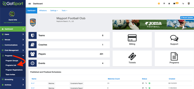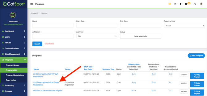 NOTE**** This functionality is only available for Program Registrations, but will soon be implemented for Event Directors to use for Tournaments/Leagues