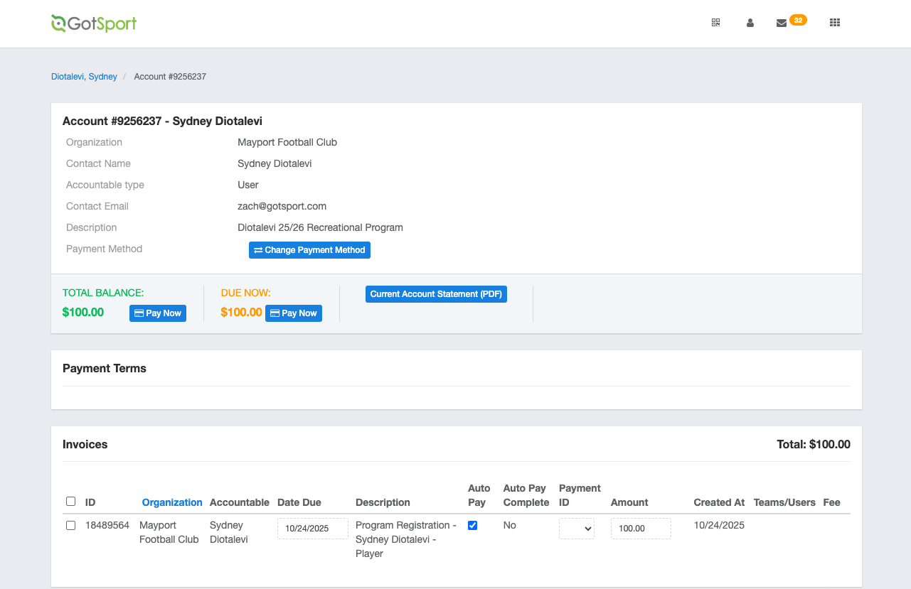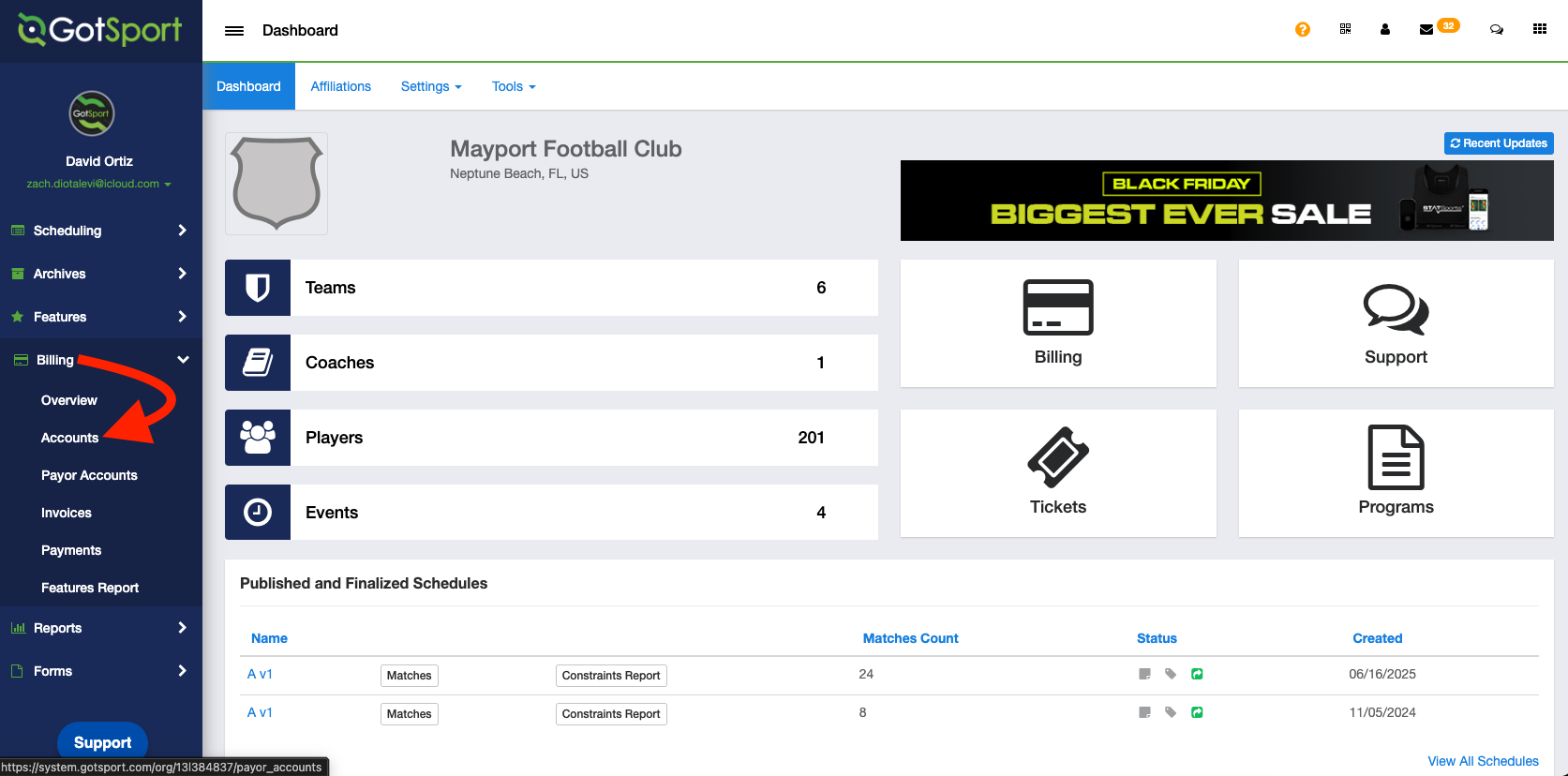 - From your Club Dashboard, click Billing > Accounts