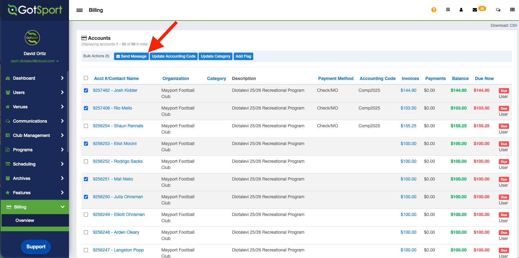 As Club Admin - How to Include Billing Accounts while Send Messages (December 2025)