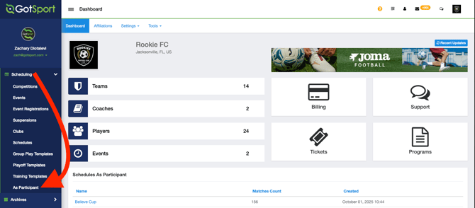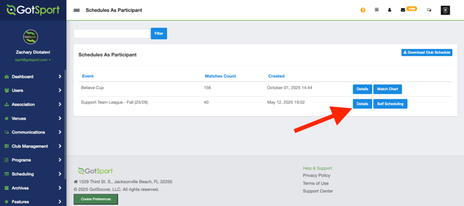 - From the Club Dashboard, click Scheduling > As Participant