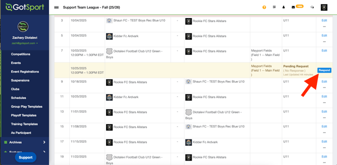 - You'll see the Pending Match Request that has been shaded yellow. Click "Respond" to Accept or Decline the request