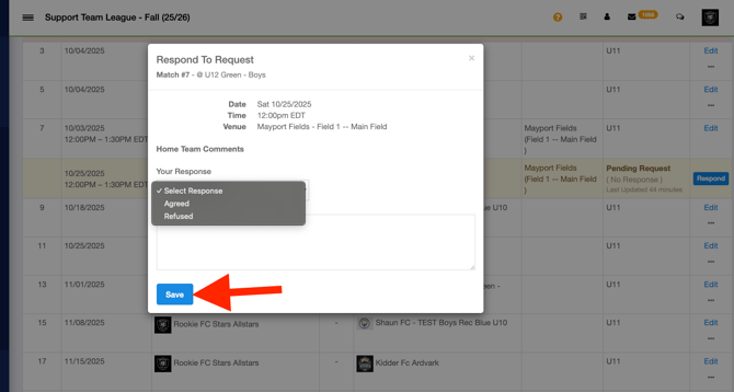 All set! Now that you've requested the change, the opposing Club Admin or Team Manager/Coach will need to Accept or Deny the request.
