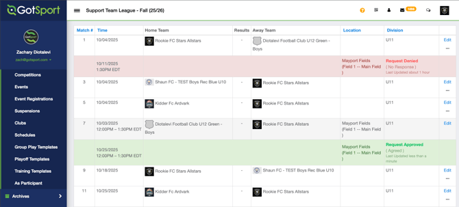 Club Administrators now have the ability to submit, approve, and deny a Match Change Request.