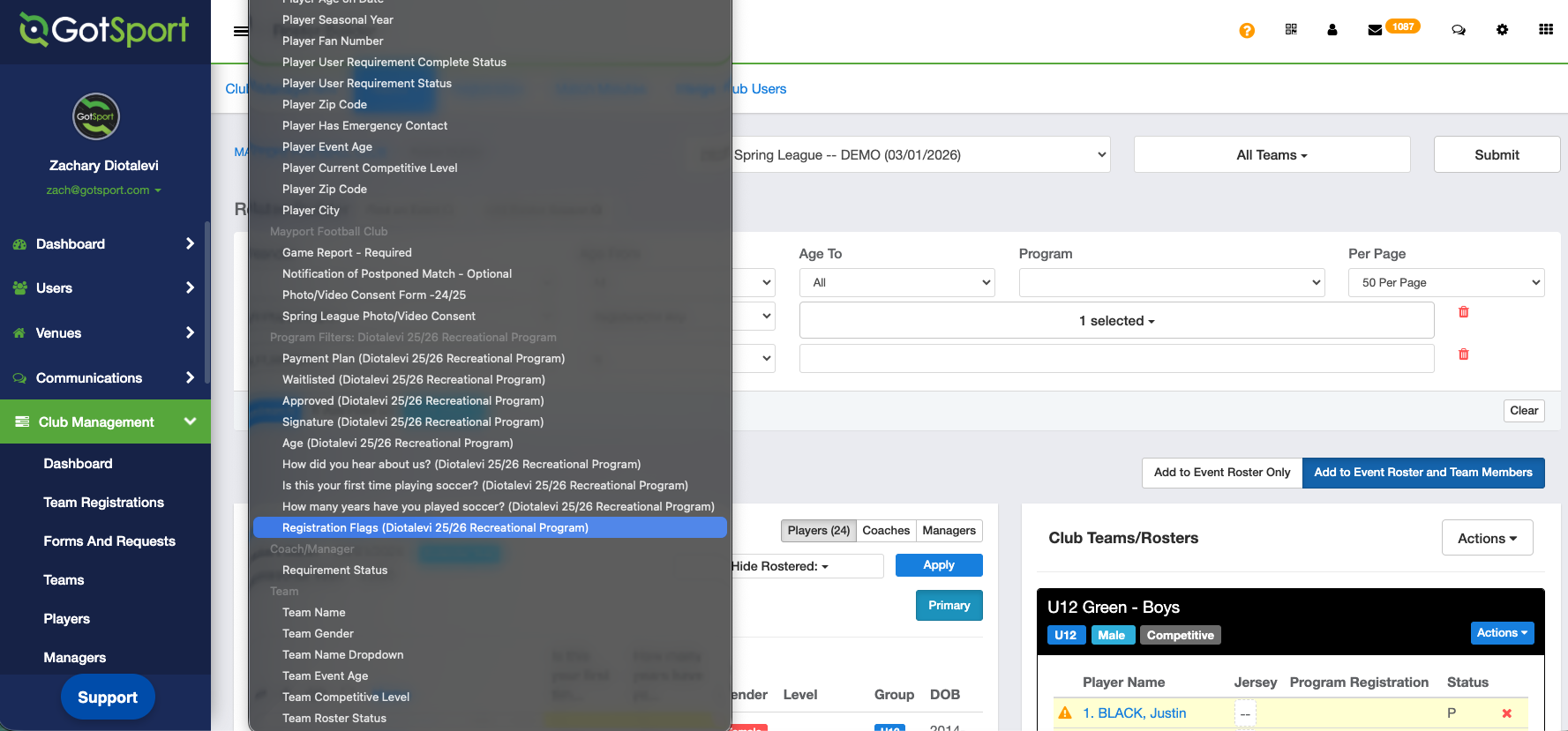 As Club Admin - How to use Program Registrations Flags within Club Management and Roster Builder (October 2025)