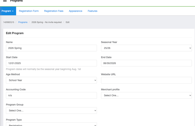 - Accounting Code: The admin can put "tryout" if you do not charge a tryout fee, or input your specific accounting code if a fee is charged for the seasonal year so the money will be categorized correctly.