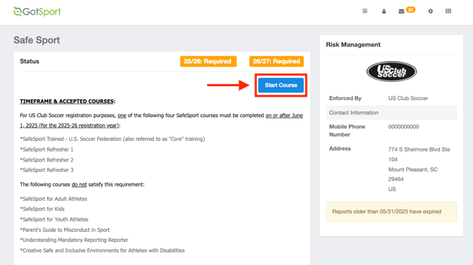 - The next step is to apply the SafeSport course completion to the USCLUB SafeSport requirement within your GotSport account.