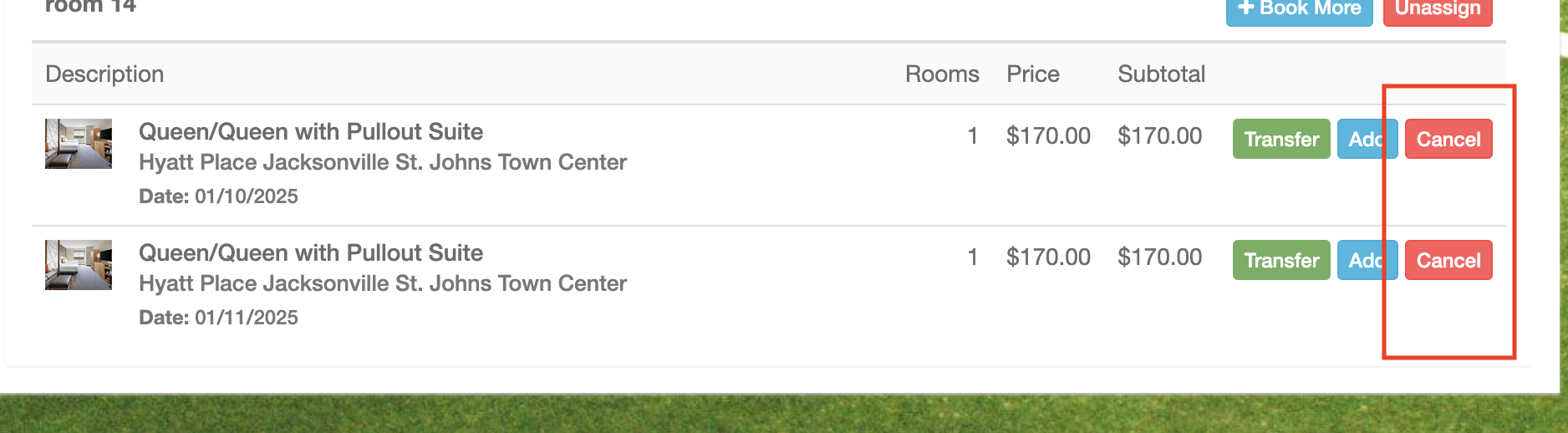 - Seleccione Cancelar (Cancel) en cada noche que desee cancelar.