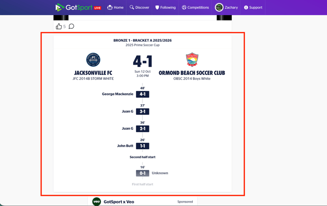 - From your GotSport Live Dashboard, scroll down until you've located the match you want to build a highlight for