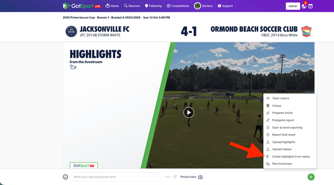 GotSport Live - How to Create Highlights from Uploaded Streams on your Desktop