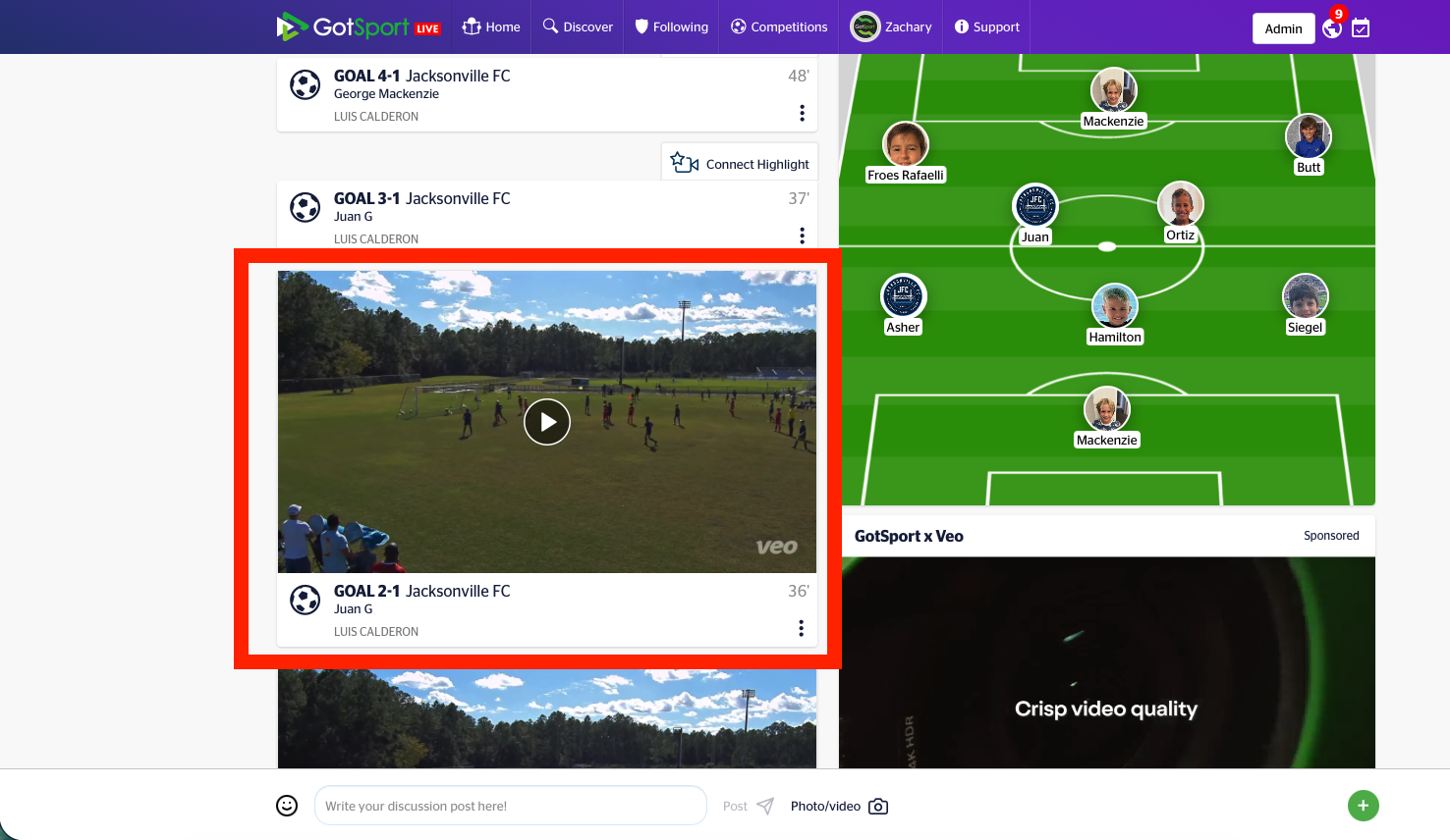 This article will demonstrate how users can clip highlights from matches that were livestreamed and uploaded to GotSport Live