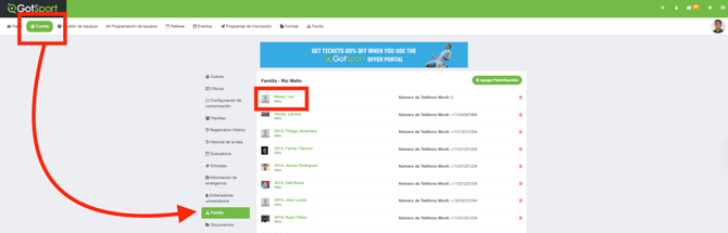 Para encontrar a los miembros de su familia asociados, haga clic en “Cuenta” en la barra de menú superior.