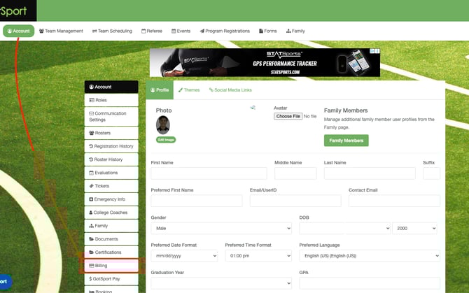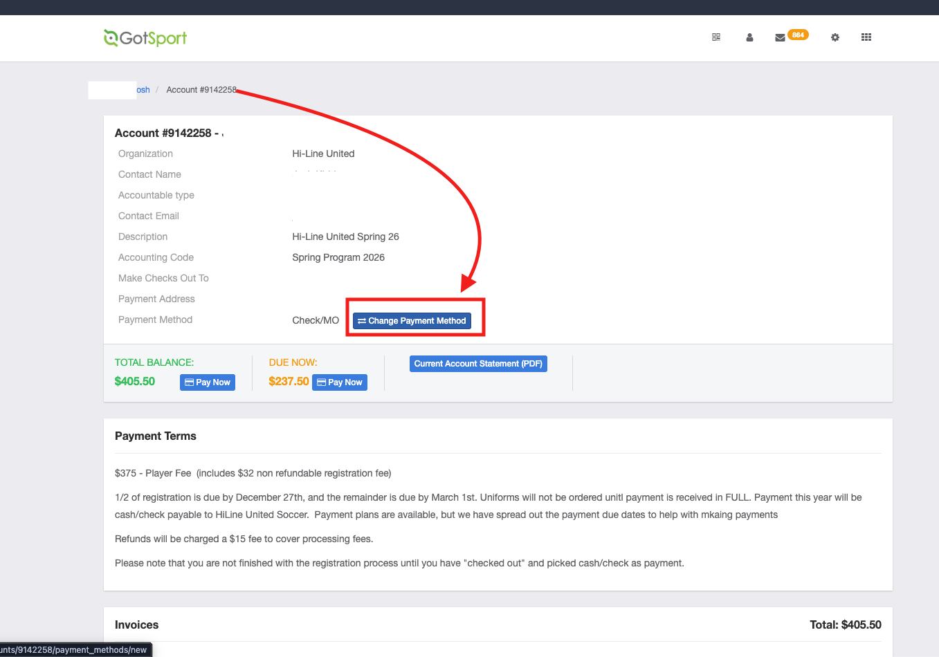 This article shows two methods of how to change or update your payment method as a Parent/Player.