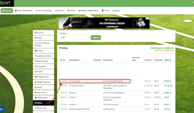 - Go to https://system.gotsport.com and enter your account email and password, and then click "Log In".