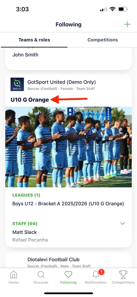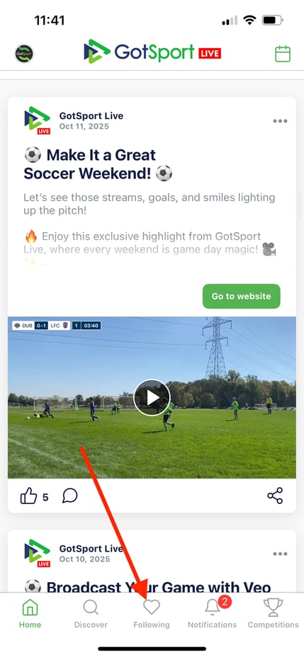 - Open GotSport Live, then click the "Following" tab at the bottom of the screen