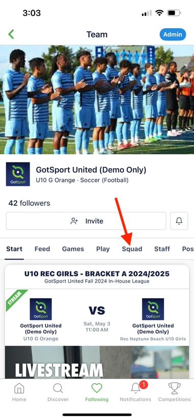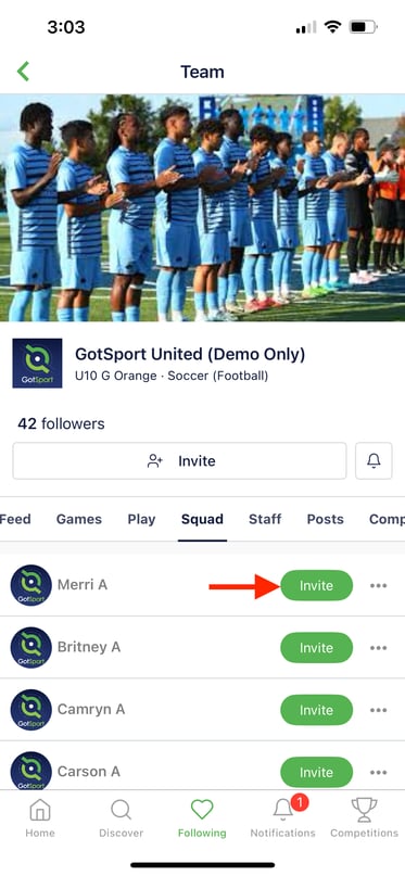 GotSport Live - How to Invite Team Members to GotSport Live within the App