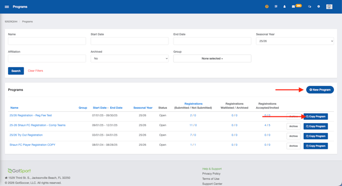 - Click New Program, or you can copy and edit a previously created program as well