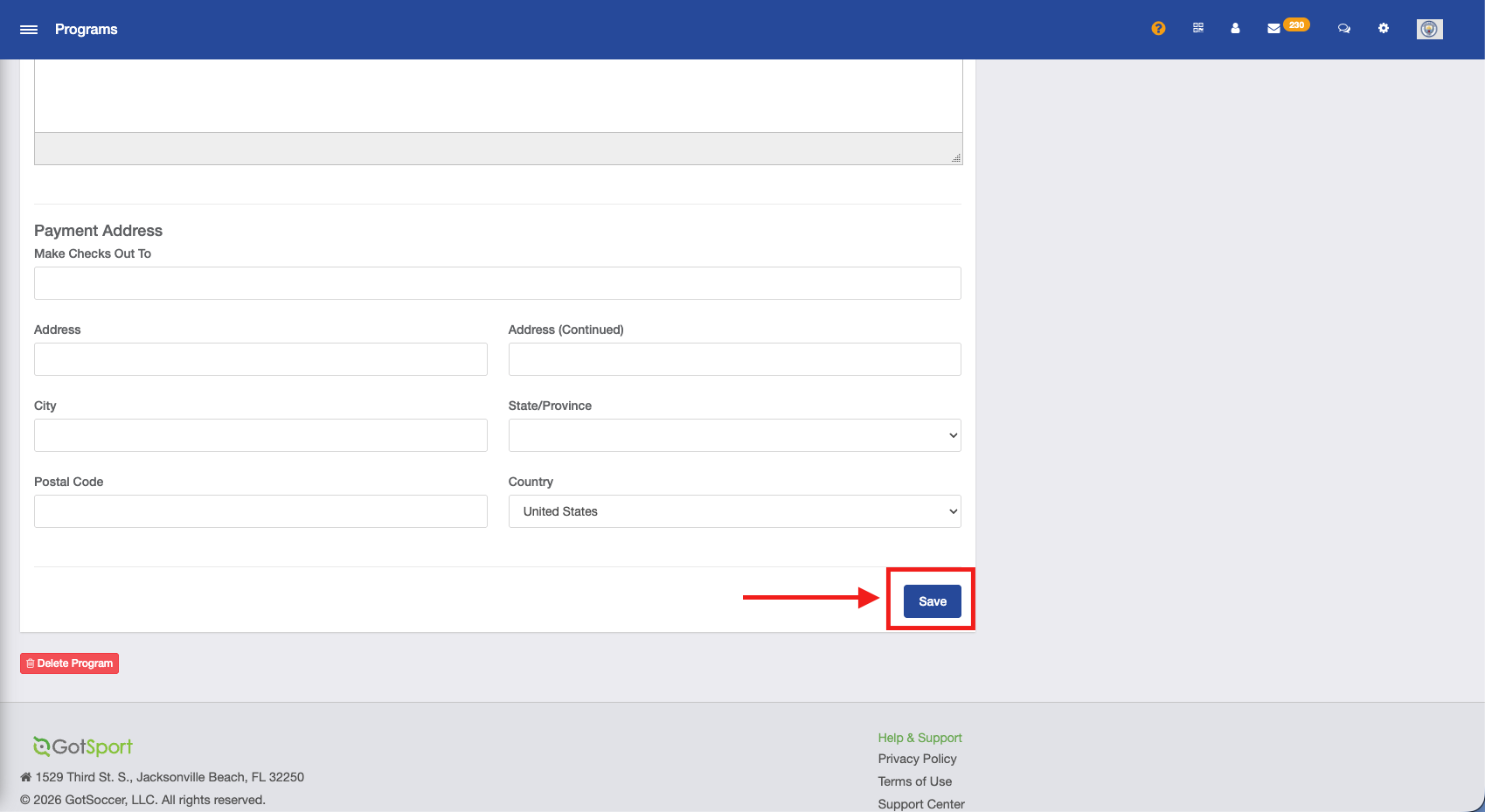 After you have selected and entered all the information on this program setup page, click Save at the bottom to continue.